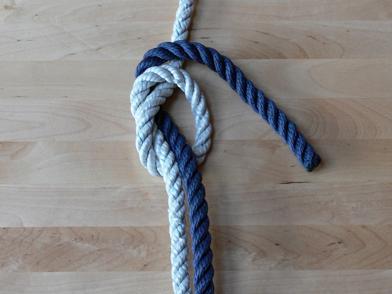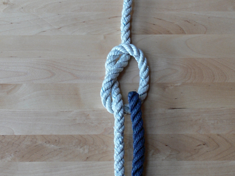 • einen gewöhnlichen Knoten in ein Seilende legen